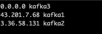 $ /var/lib/kafka/bin/kafka-console-consumer.sh --bootstrap-server kafka1:9092,kafka2:9092,kafka3:9092 \