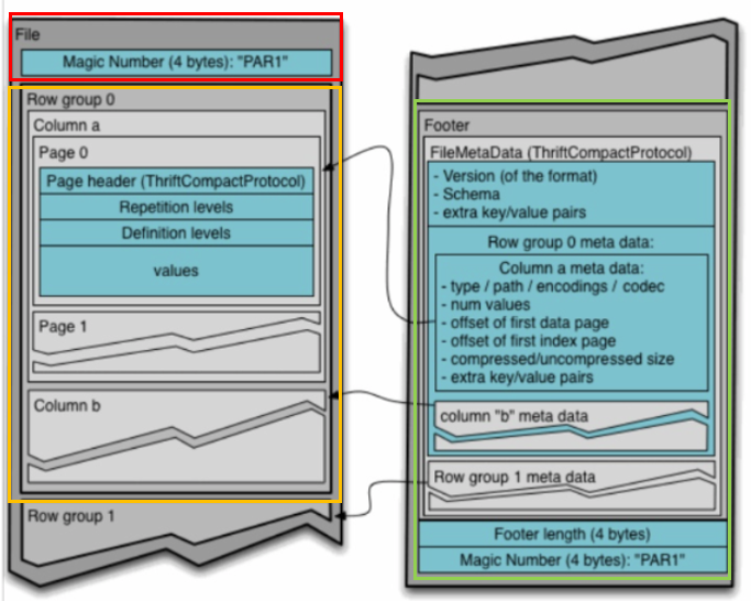 Parquet File Structure로 검색했을 때 대표적으로 나오는 사진이다.