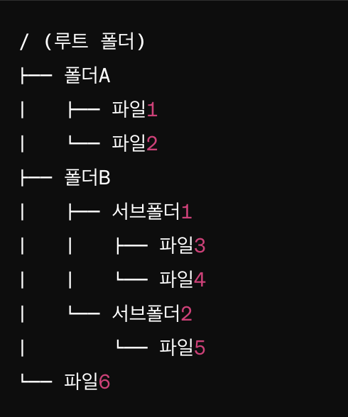 - 파일과 폴더의 계층 구조를 사용해 데이터를 조직화하고 관리할 수 있어.