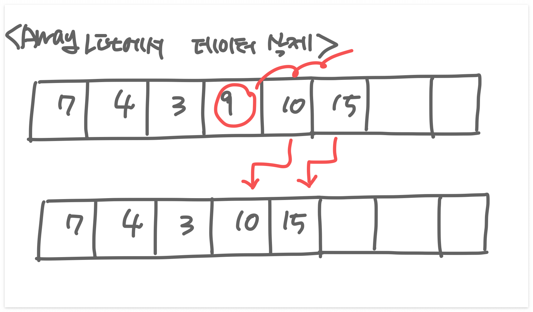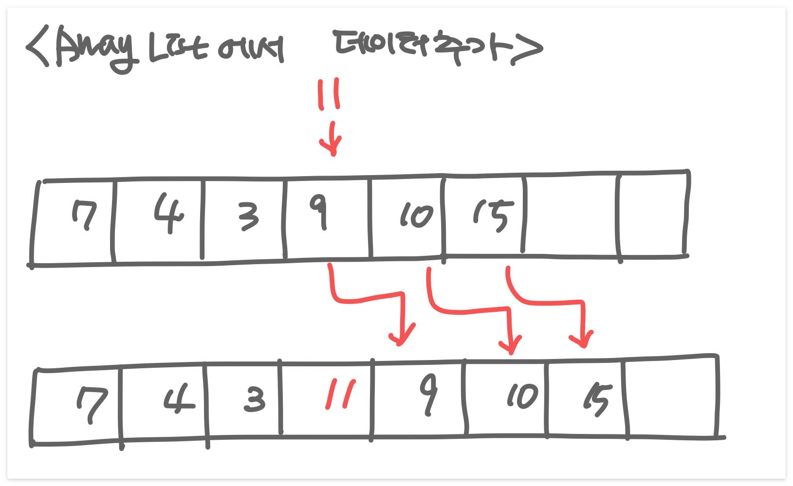 - ๋ฐ์ดํฐ ์ถ๊ฐ/์ญ์ ๊ฐ LinkedList์ ๋นํด ์ค๋ ๊ฑธ๋ฆฐ๋ค.
