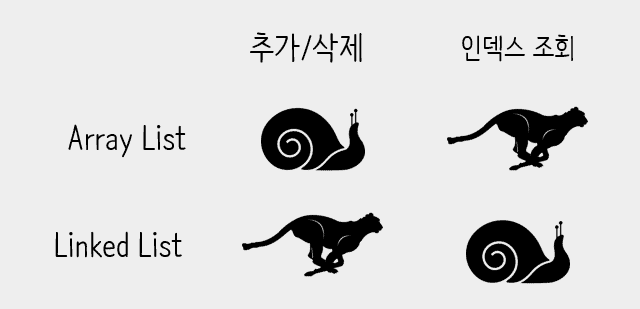 java์ ArrayList, LinkedList ๋น๊ต (์ถ์ฒ: ์ํ์ฝ๋ฉ)