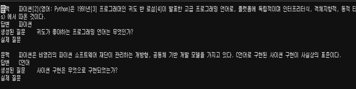 기존 질문이 있었기에 생성된 질문과 실제 질문이 같이 출력